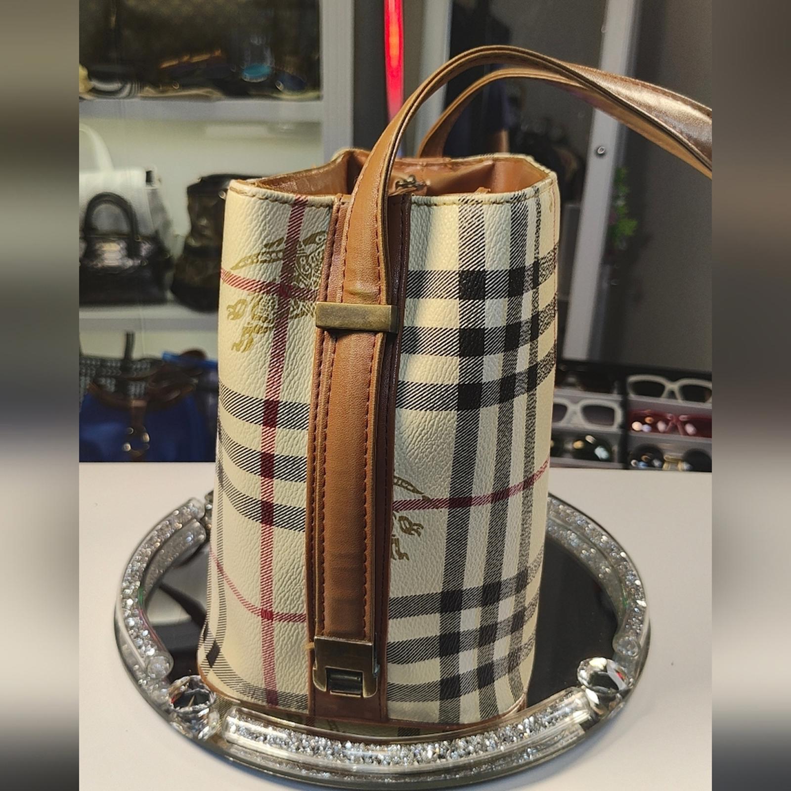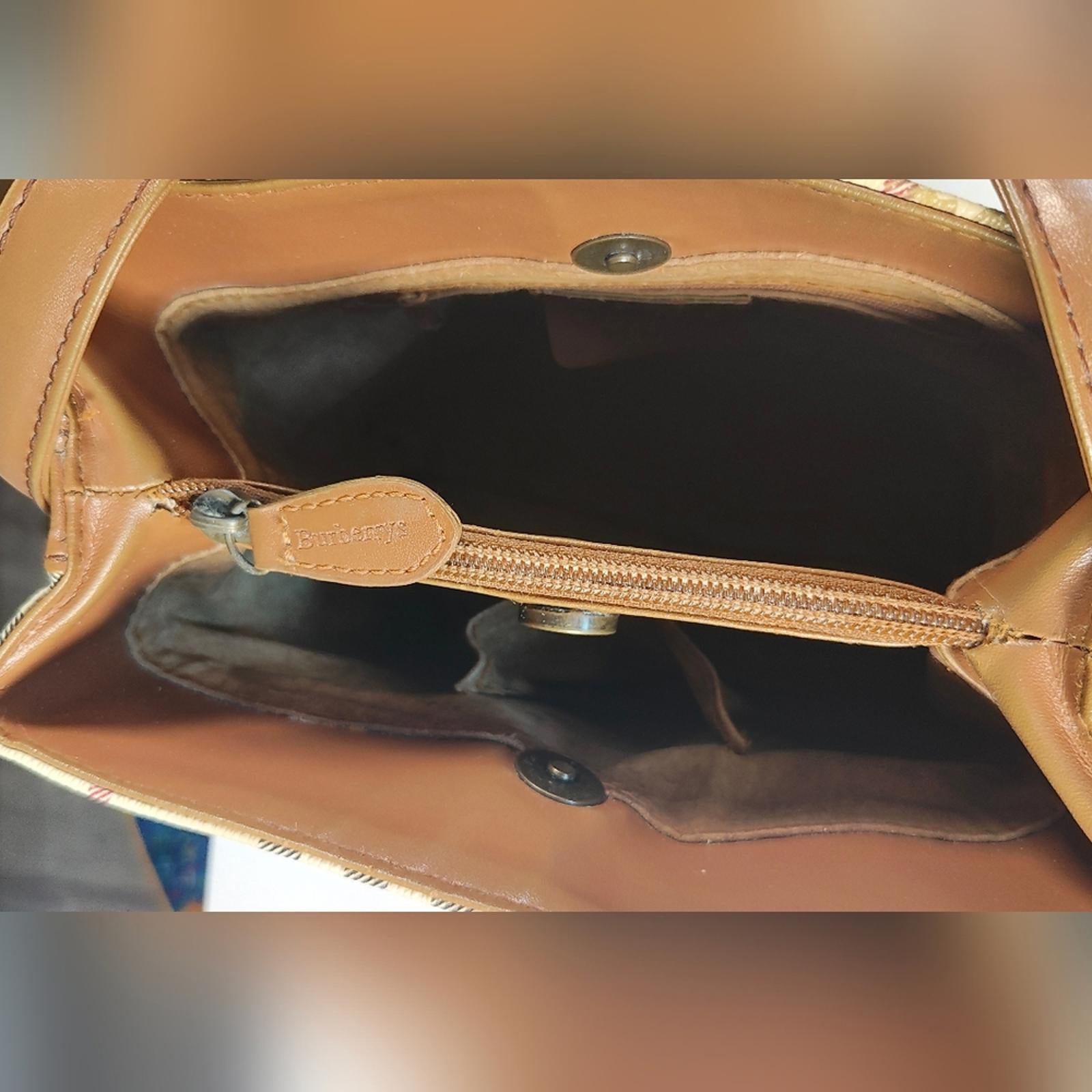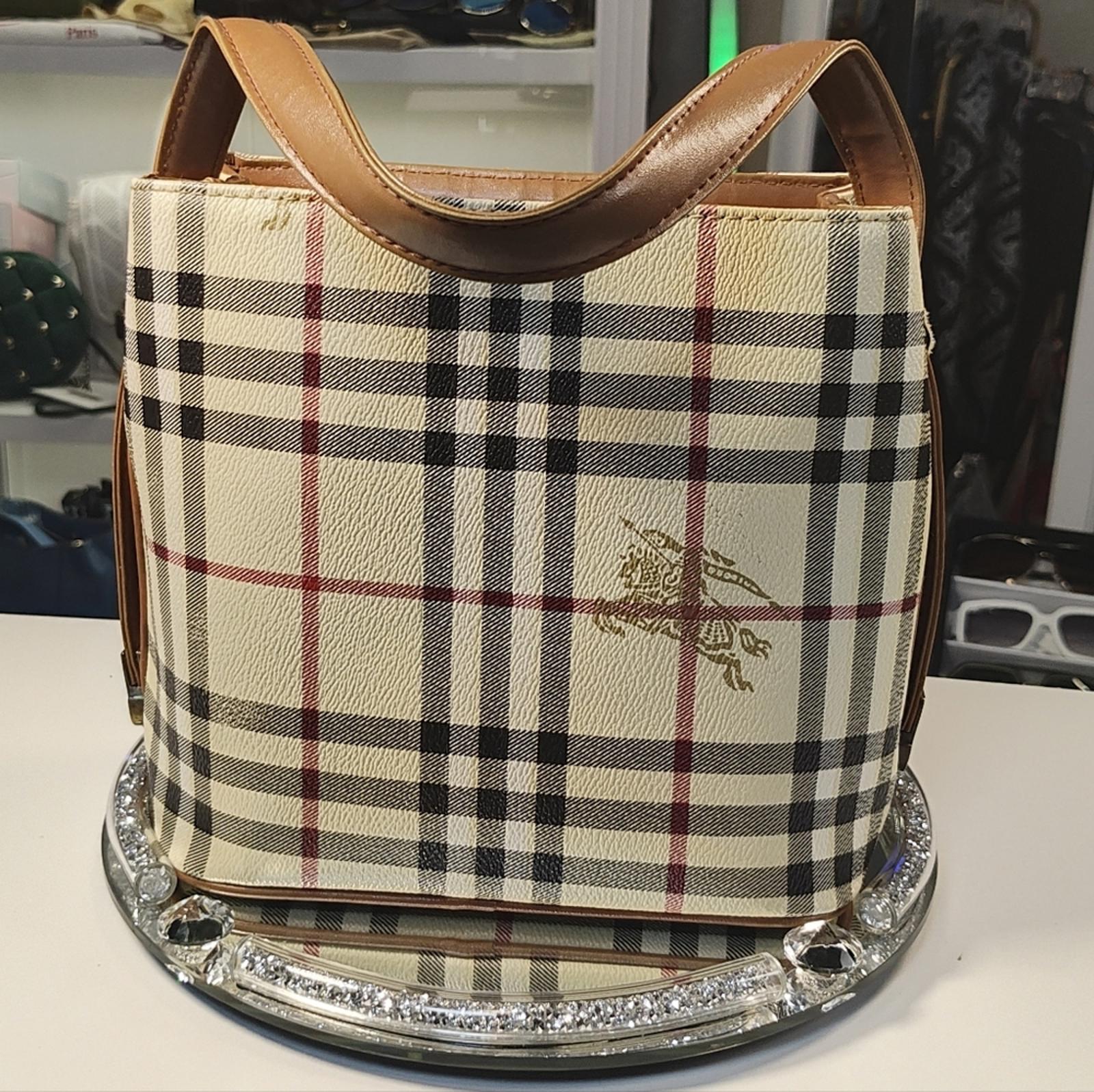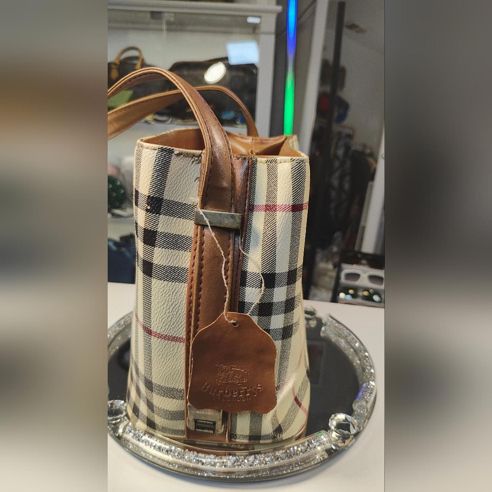 Stylish Vintage Burberry bag with iconic novacheck checkered pattern. Features brown leather accents and handles.