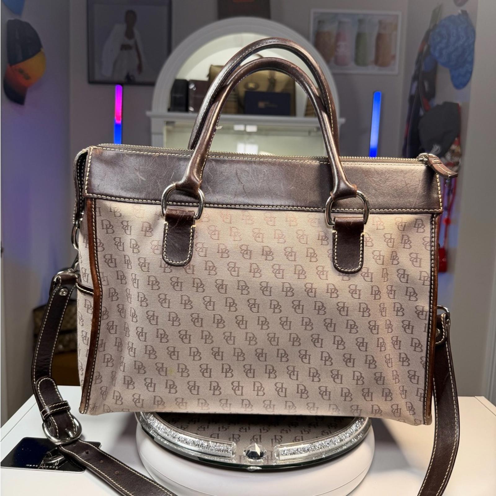 Dooney & Bourne Vintage Brown Signature Logo Double Pouch Tote Bag