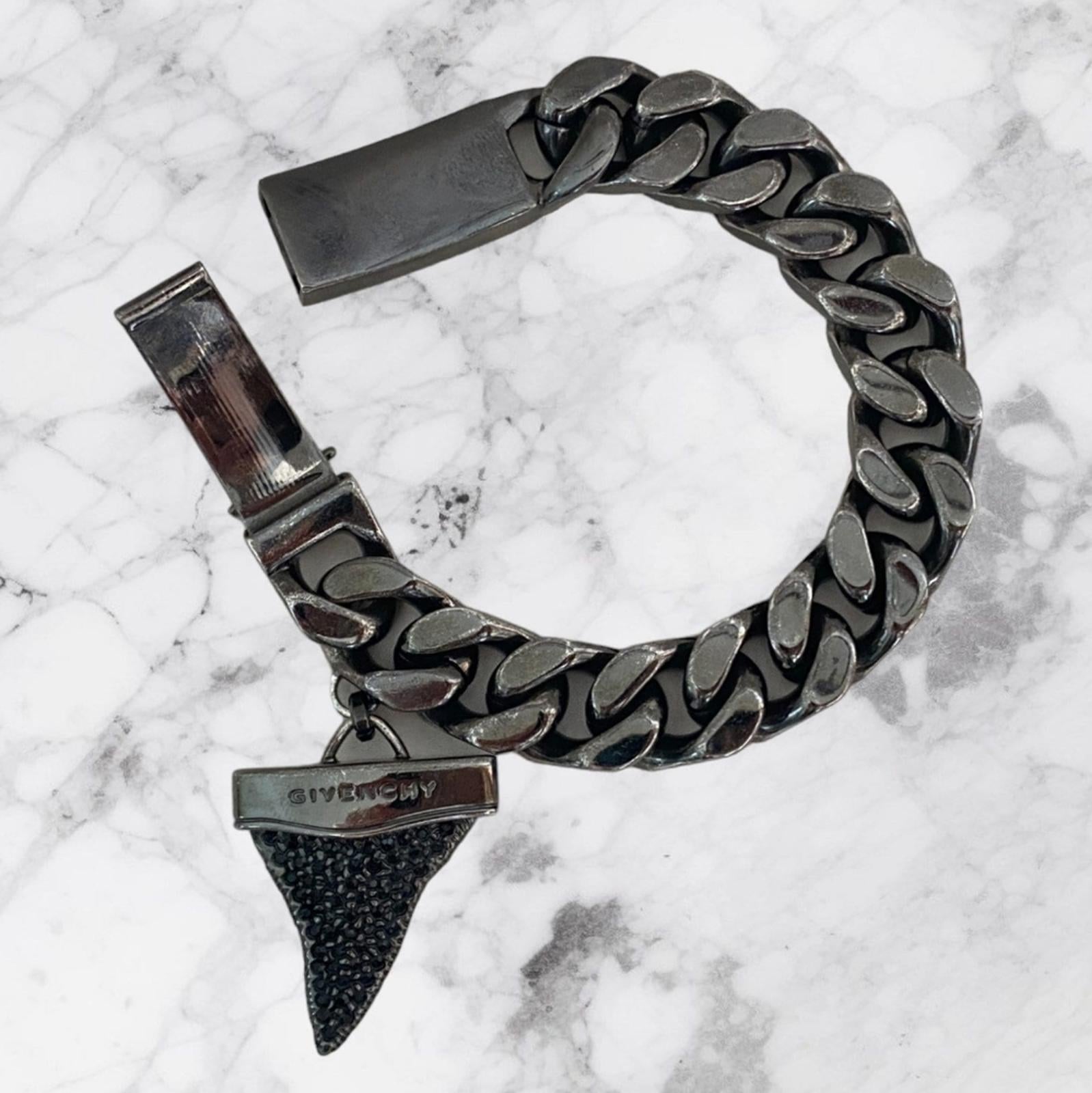 Givenchy Black Pave Shark Tooth Bracelet Cuban Link
