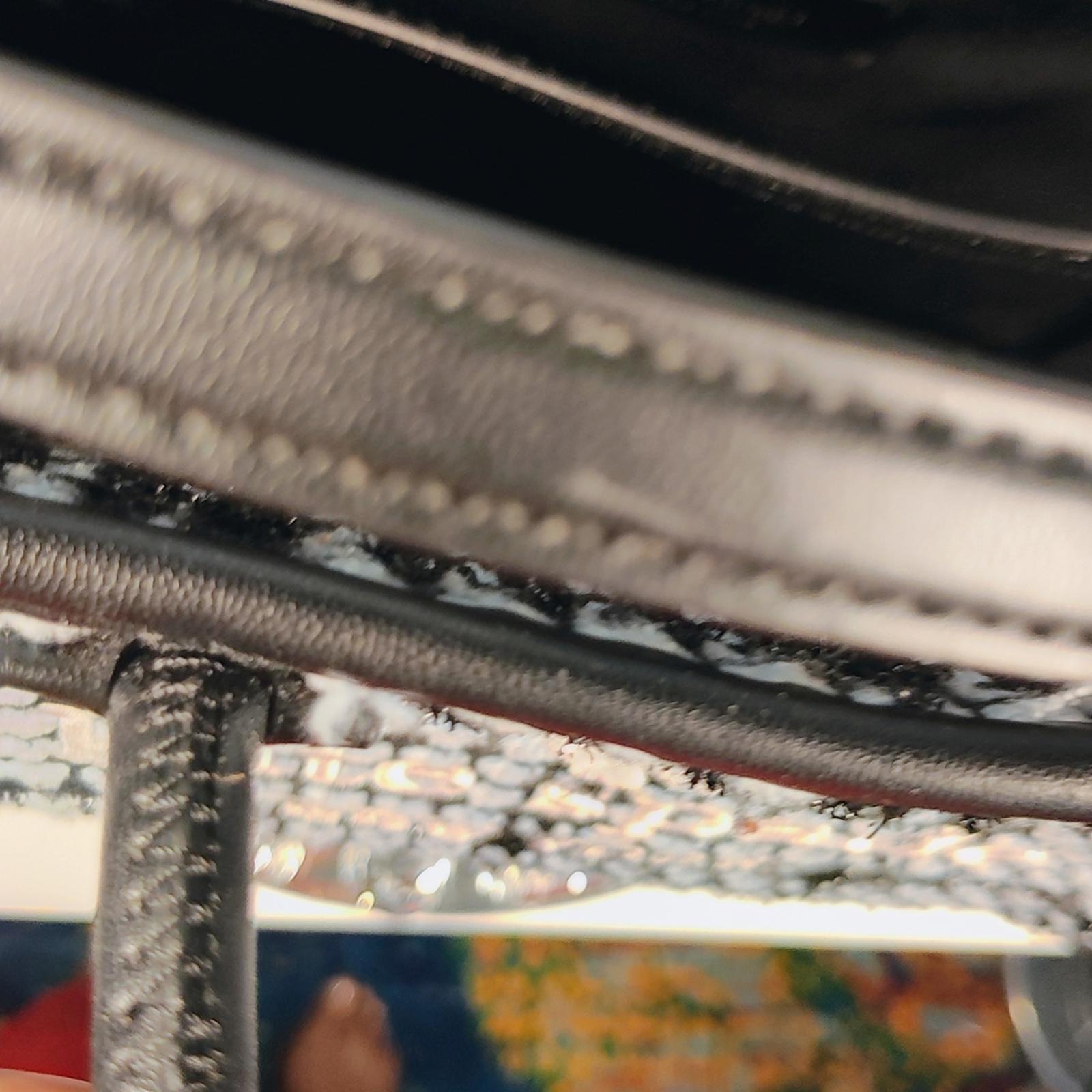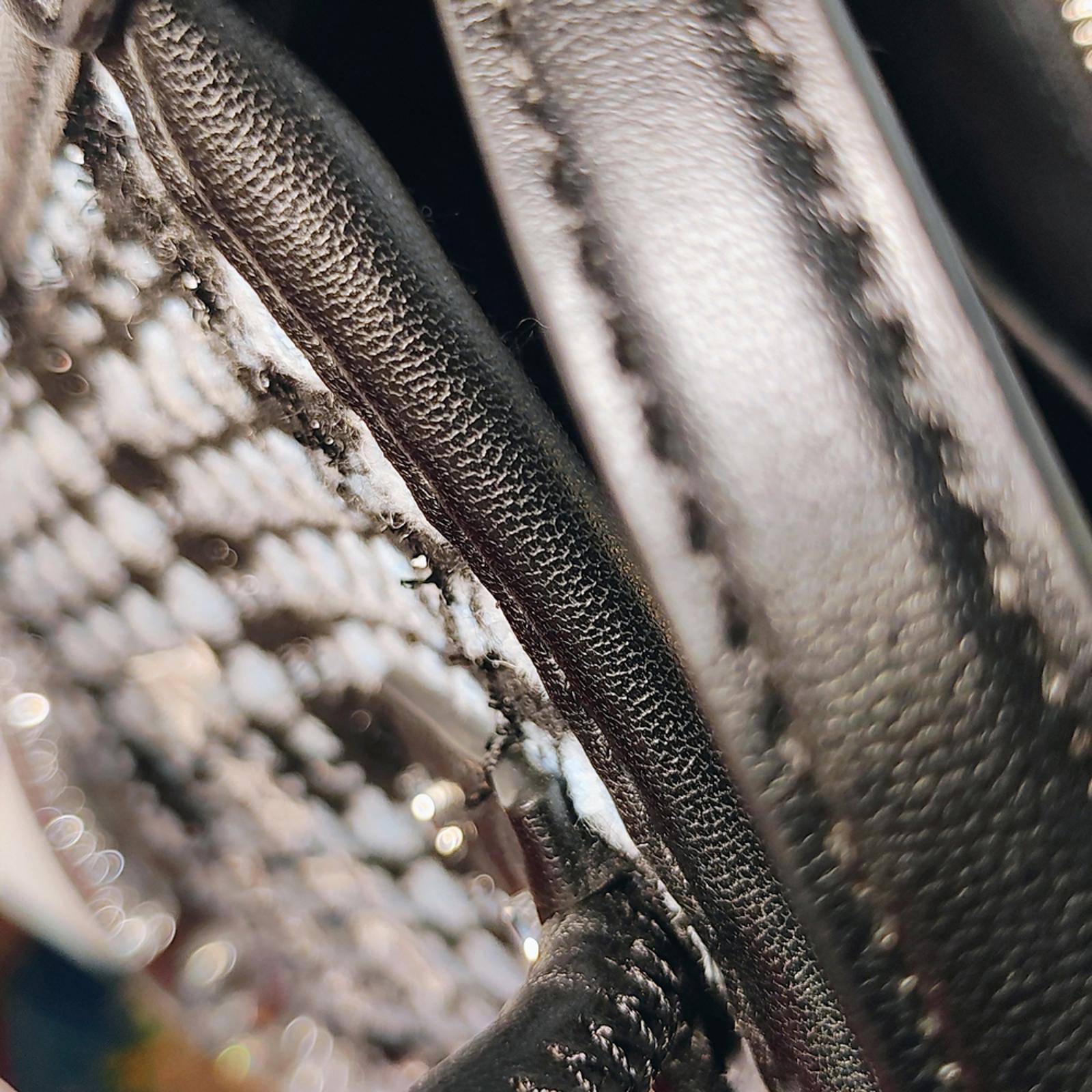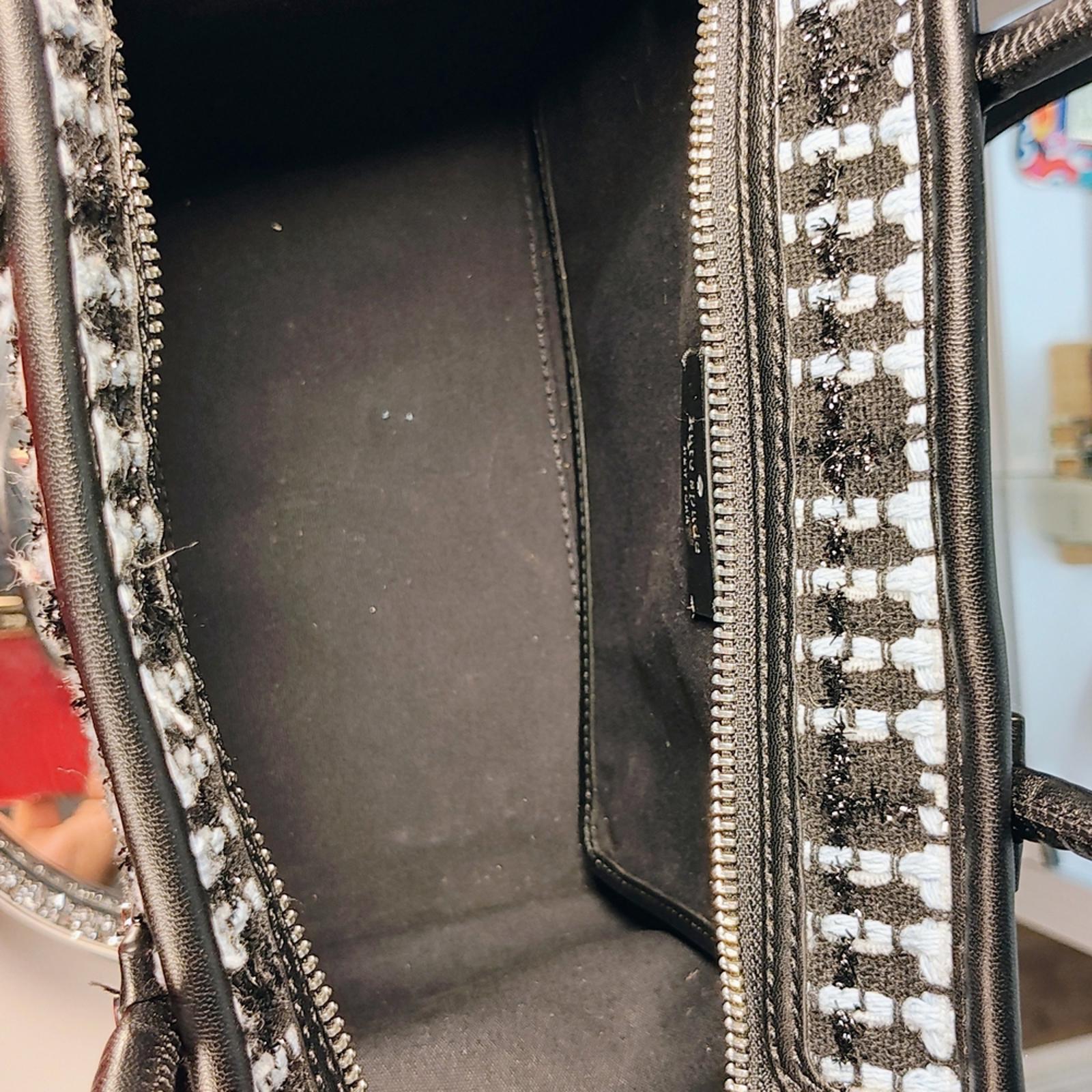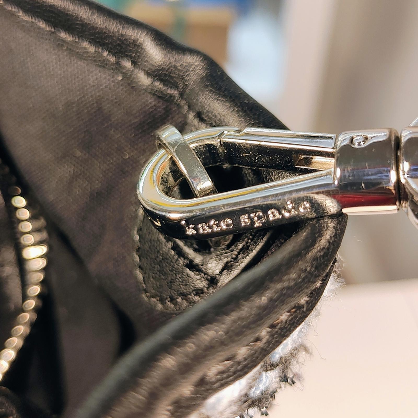 The Kate Spade Ella bag has a black lining and inner pockets for added convenience. It also comes with a black adjustable and detachable strap, making it perfect for cross-body wear. The bag is lightweight, limited edition, and has the classic Kate Spade logo. Its vintage look is false. This bag is a great addition to any city-inspired, colorful, and classic wardrobe.