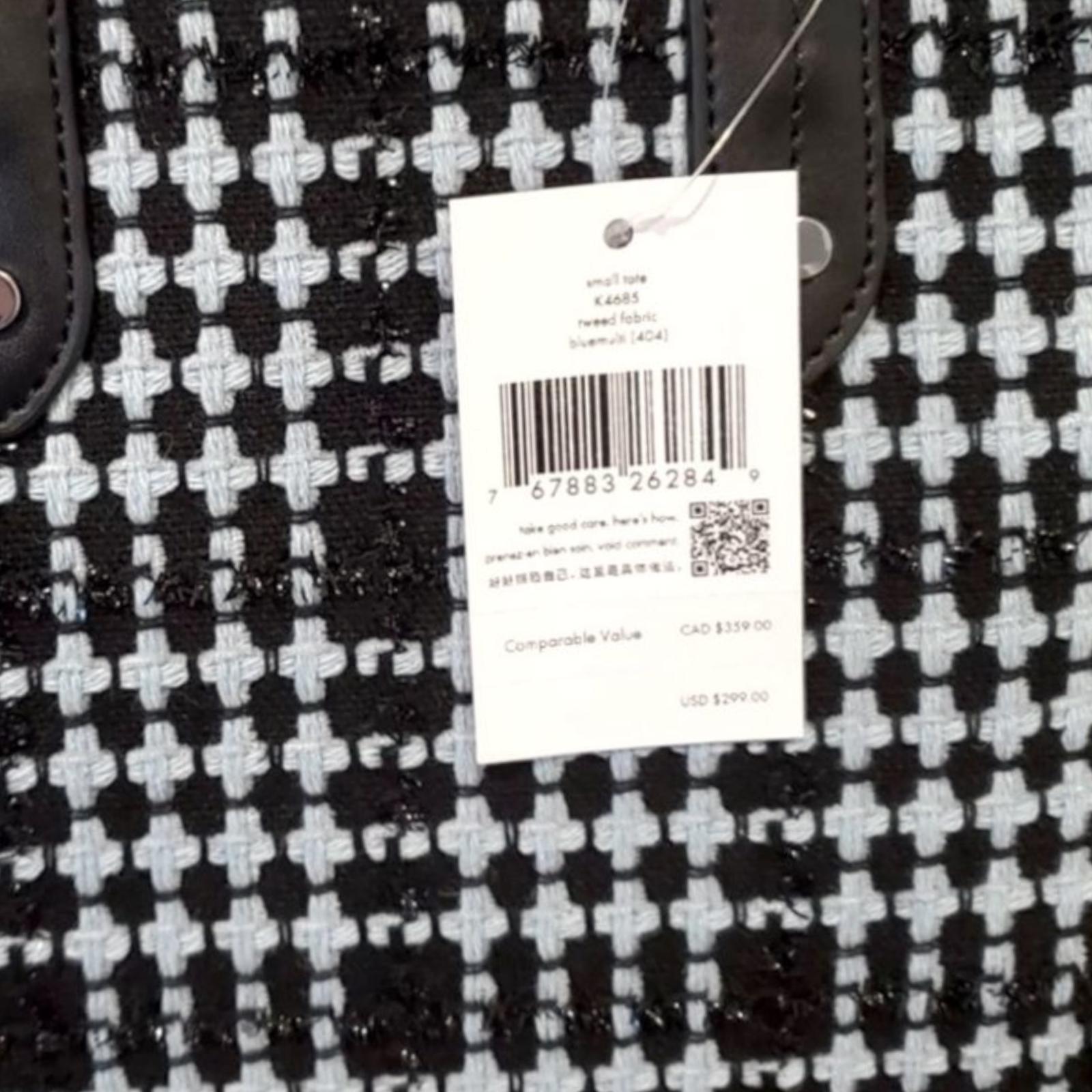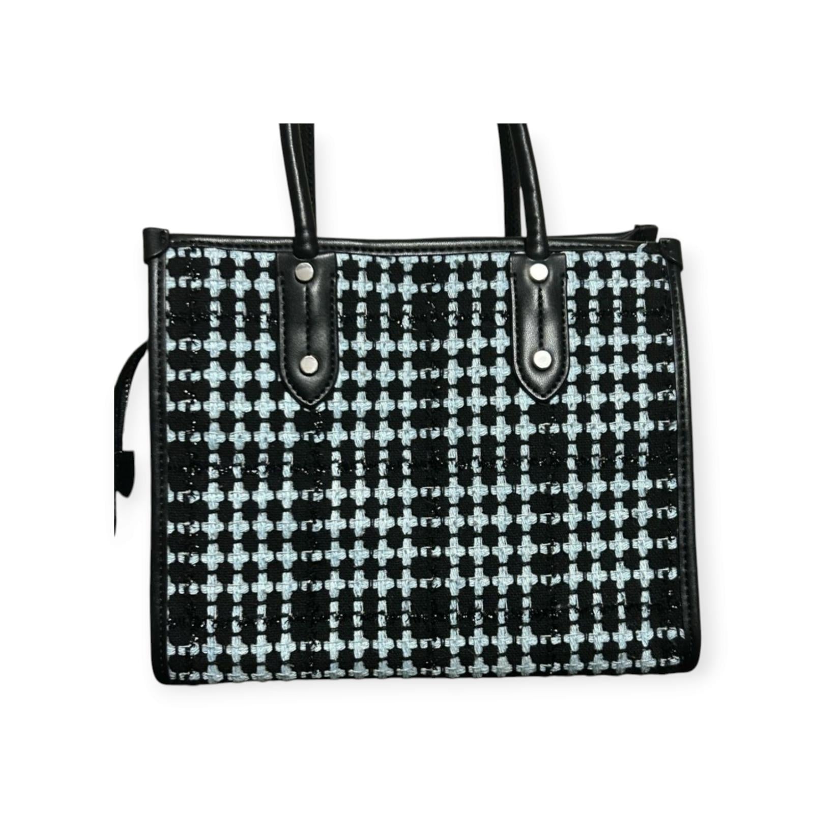 Kate Spade New York tote bag. Featuring a chic black and light blue plaid design, this bag is perfect for both everyday use and special occasions.