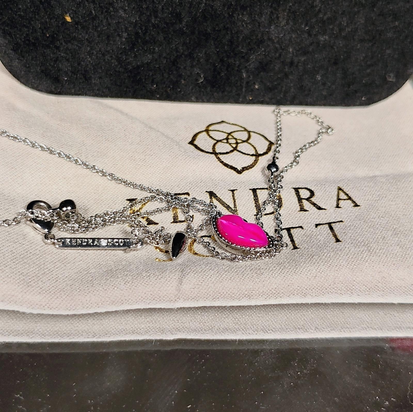Kendra Scott's most flirty pendant yet, the Lips Silver Pendant Necklace in Hot Pink Mother-of-Pearl is certainly a style we’re sweet on. Hot pink lips are centered on a dainty chain, putting your love front and center. Gift this pendant to that special someone—don't worry, our lips are sealed.