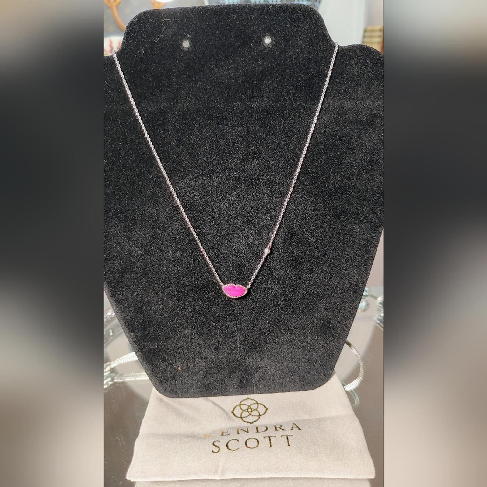Kendra Scott Lips Silver Pendant Necklace in Hot Pink Mother-of-Pearl