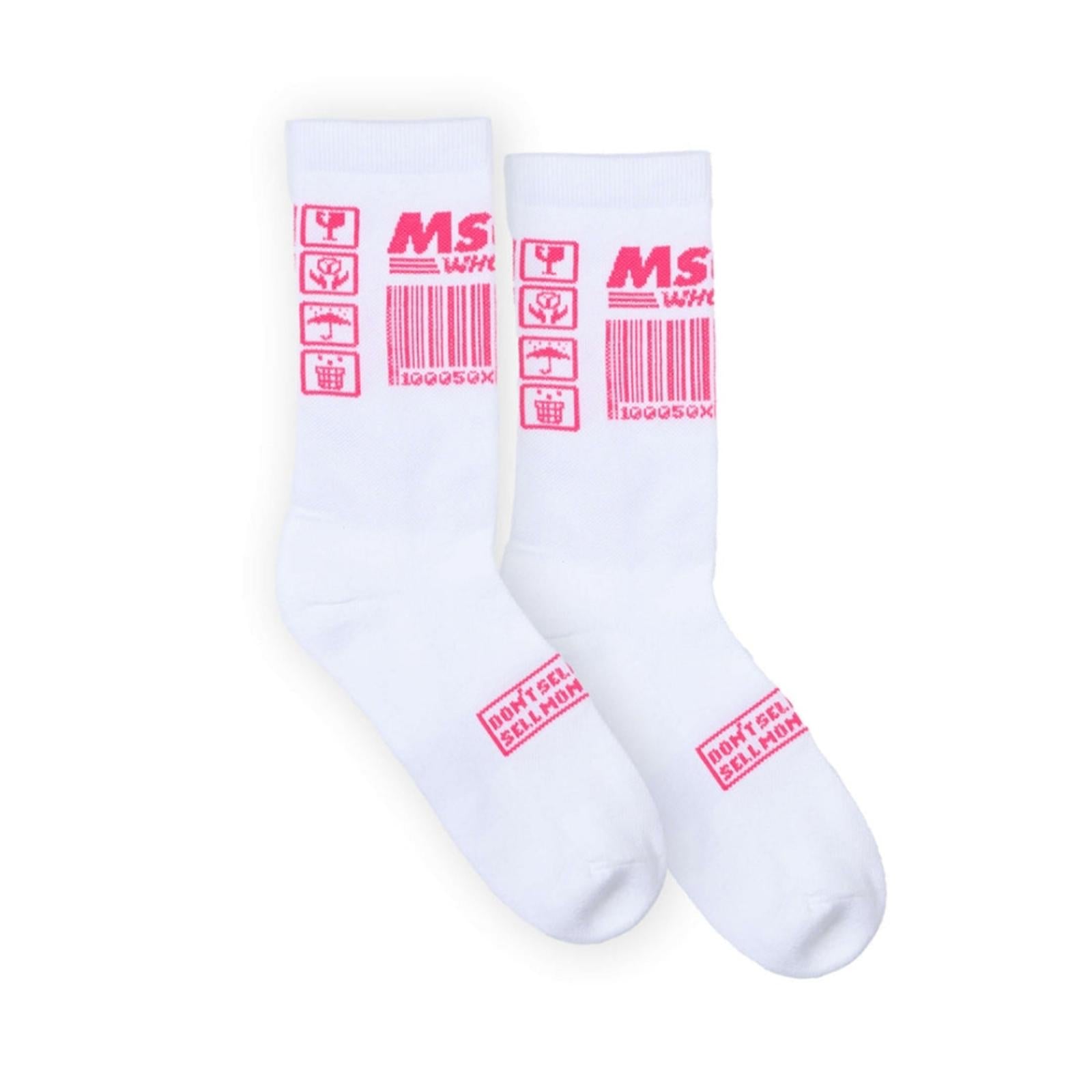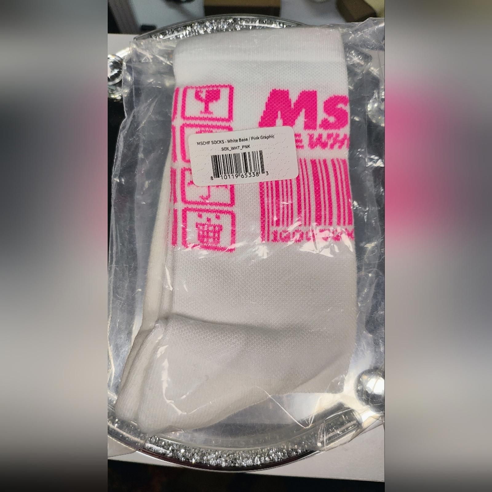 Mschf White and Pink Graphic Socks