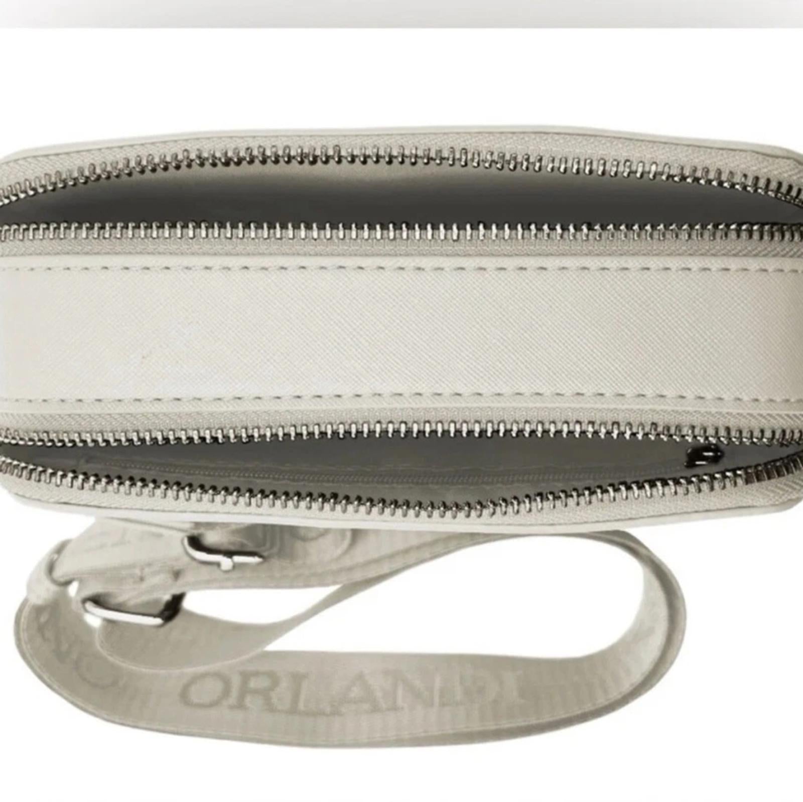 Stylish white crossbody bag featuring silver accents and a heart detail. Perfect for any occasion.