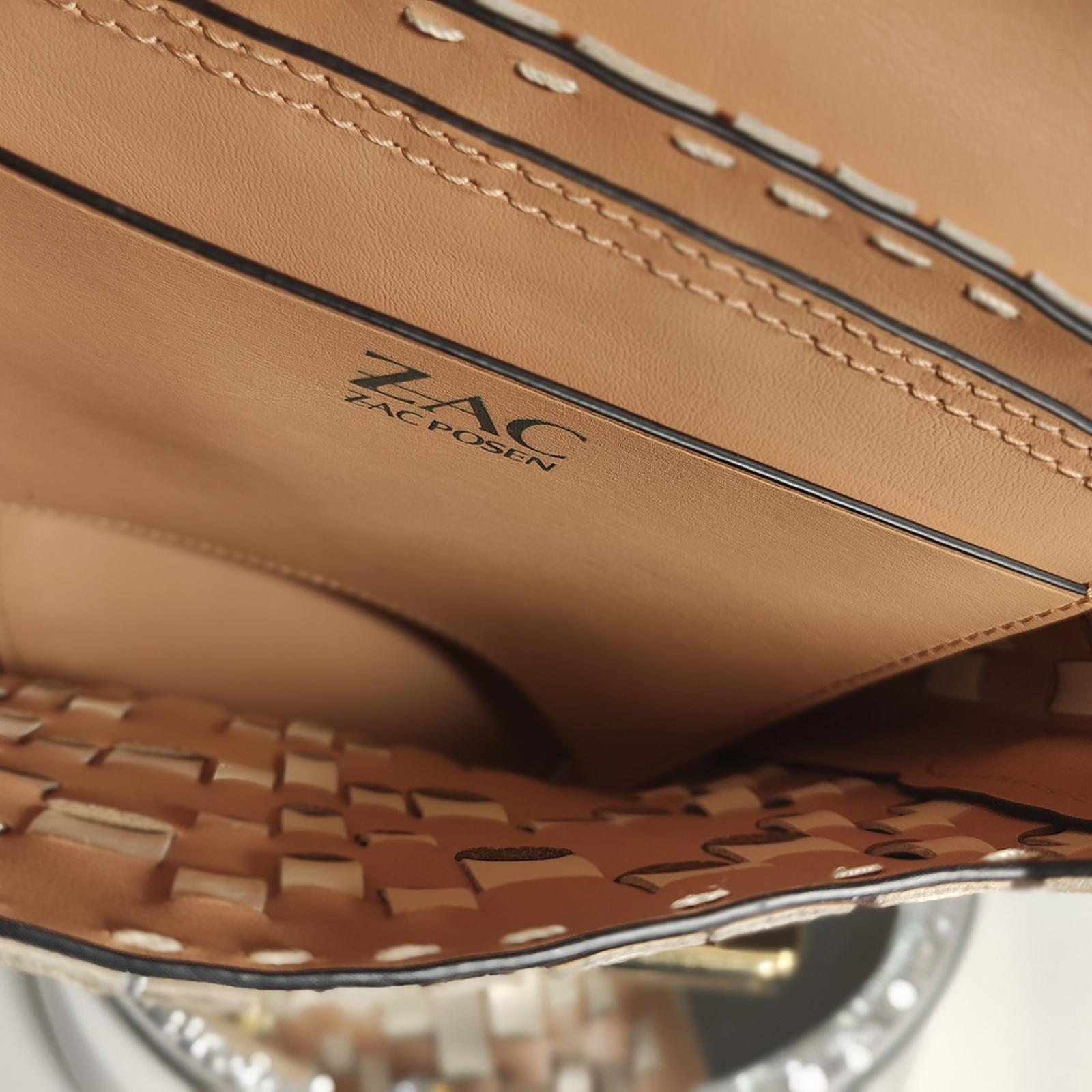 Elevate your style with this elegant ZAC Zac Posen bag. Featuring a sophisticated tan and cream woven design, it's perfect for any occasion. The gold-tone hardware adds a touch of luxury.