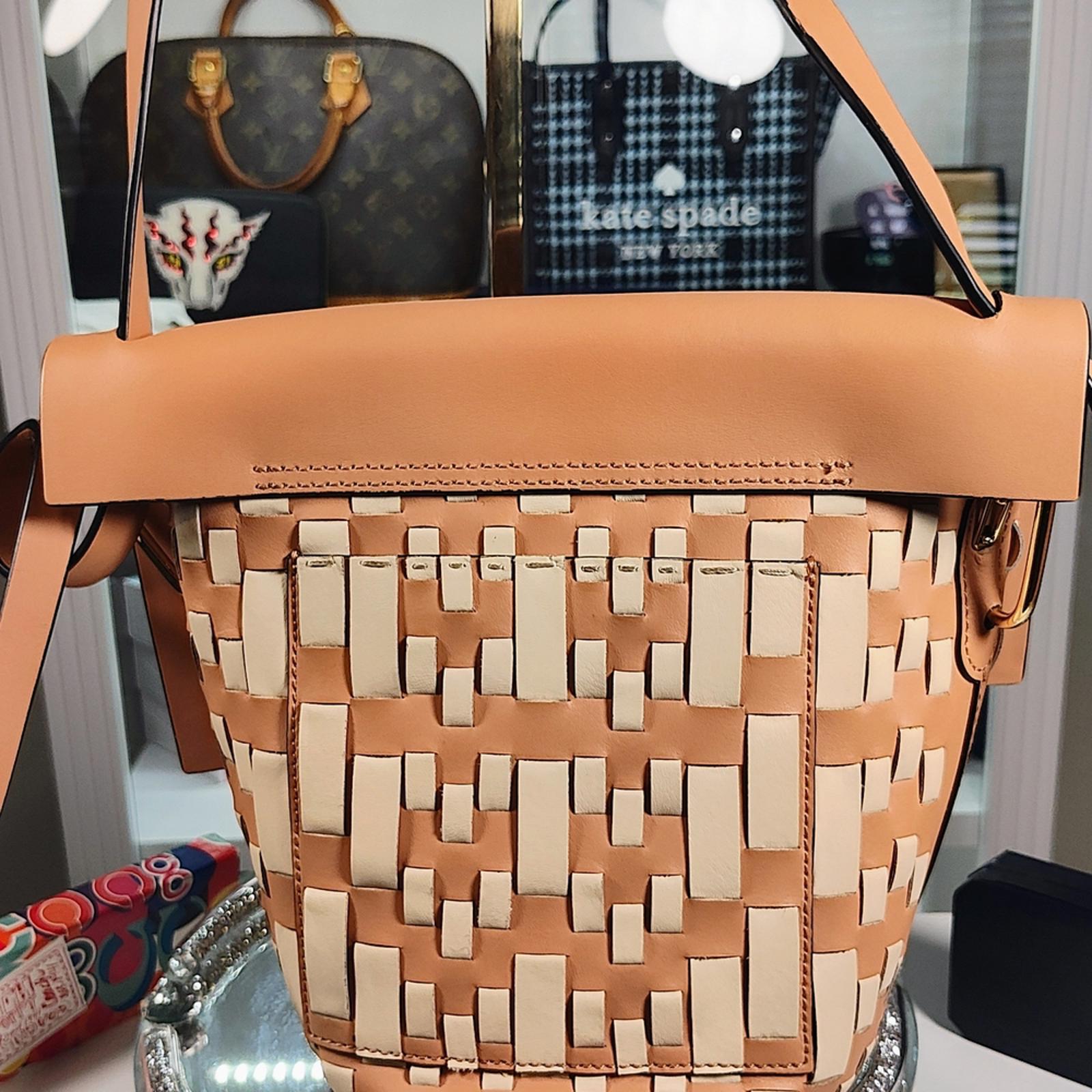 ZAC Zac Posen Tan and Cream Woven Leather Crossbody Bag